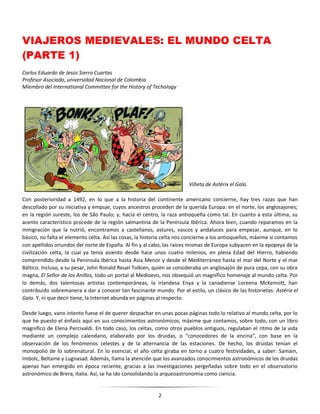 Este documento presenta un resumen de un artículo sobre los conocimientos astronómicos del mundo celta. Explica que los druidas, sacerdotes celtas, usaban la observación de los cielos para crear un calendario que regulaba las actividades de la sociedad. Las principales festividades celtas estaban alineadas con la aparición de ciertas estrellas y constelaciones visibles al amanecer. También menciona que Halloween tiene sus orígenes en una festividad celta llamada Samhain.