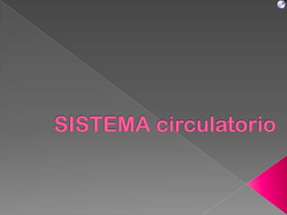 El sistema circulatorio está compuesto por el sistema cardiovascular, que conduce y hace circular la sangre a través de los vasos sanguíneos bombeados por el corazón, y el sistema linfático, que conduce la linfa unidireccionalmente al corazón. Su función principal es transportar nutrientes, gases, hormonas y células sanguíneas a los tejidos y órganos, y existen dos tipos: el sistema cerrado, donde la sangre viaja por vasos sanguíneos internos, y el abierto, donde la sangre irriga direct