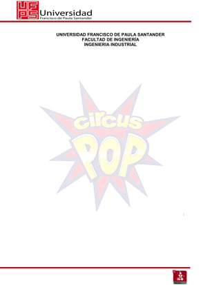 Este documento proporciona información sobre la empresa Circus Pop, una plazoleta de comidas y entretenimiento para familias. Circus Pop se creó en 2011 a partir de la demolición de dos negocios previos, Multipollo y Brisas Pizzería. Ofrece comida, juegos para niños y eventos artísticos. Su misión es brindar un espacio de recreación y entretenimiento familiar de alta calidad.