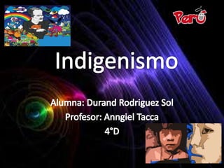 El documento habla sobre la literatura indigenista en el Perú y sus principales representantes como Ciro Alegría. Reivindica la cultura andina en la sociedad peruana y muestra al indígena como el protagonista del pueblo. Ciro Alegría fue un escritor peruano conocido por obras como Serpiente de Oro y Perros Hambrientos que resaltaron la cultura andina.