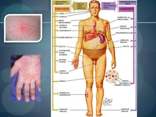 Este documento describe la cirrosis hepática, clasificándola según su etiología en cirrosis alcohólica, poshepática y biliar. Explica los factores importantes para la producción de cirrosis alcohólica y las manifestaciones del alcoholismo crónico. También cubre las causas, signos y síntomas de la cirrosis, así como sus complicaciones más comunes como la hiperesplenismo, la encefalopatía hepática y el síndrome hepatorenal.