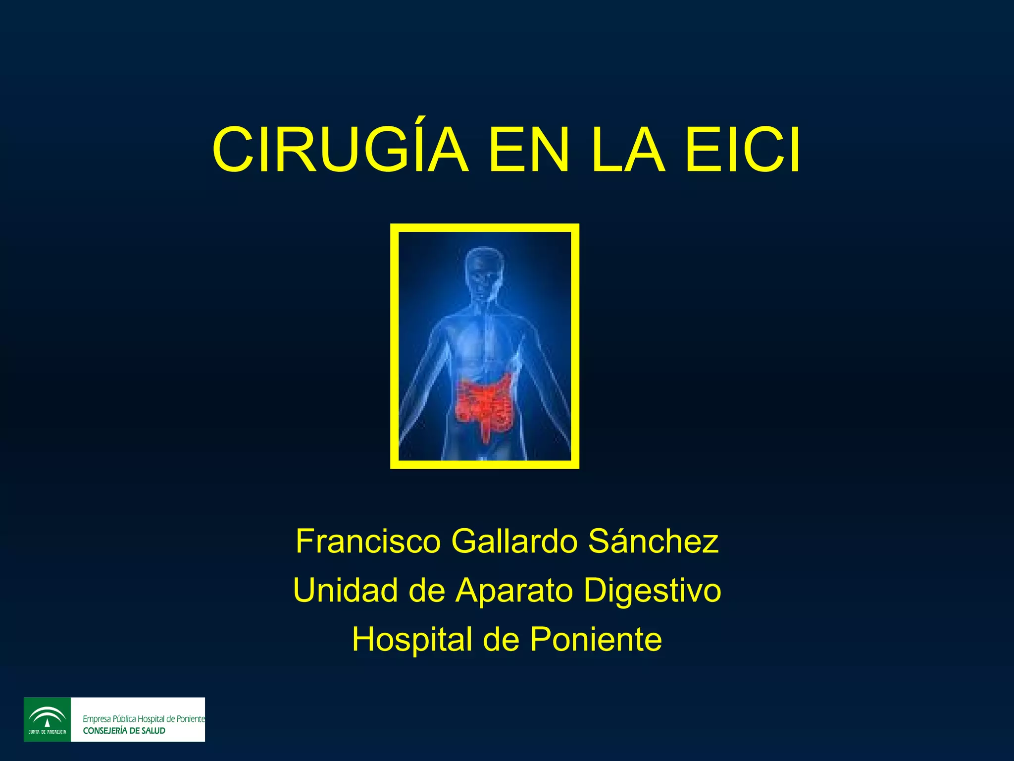 El documento resume las principales consideraciones quirúrgicas en pacientes con enfermedad inflamatoria intestinal, incluyendo cuidados perioperatorios, indicaciones quirúrgicas urgentes y electivas, y opciones quirúrgicas como proctocolectomía total con reservorio ileoanal o colectomía. También discute el tratamiento quirúrgico de complicaciones como fístulas y la prevención de recidivas en la enfermedad de Crohn.