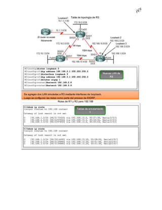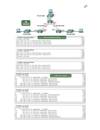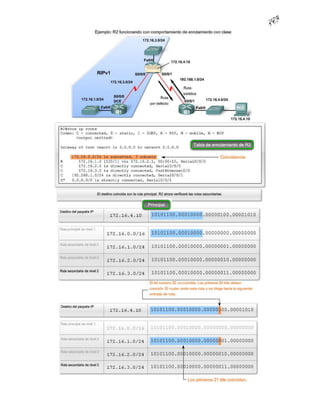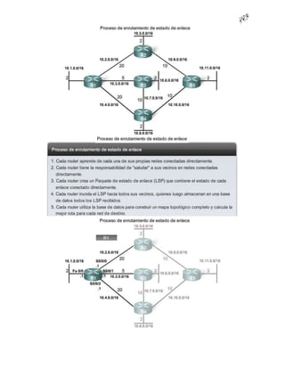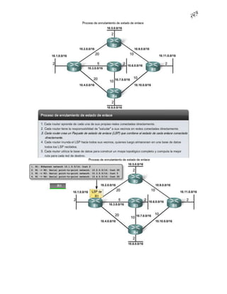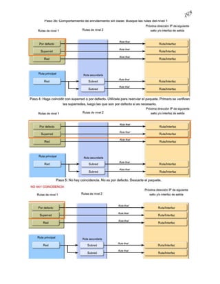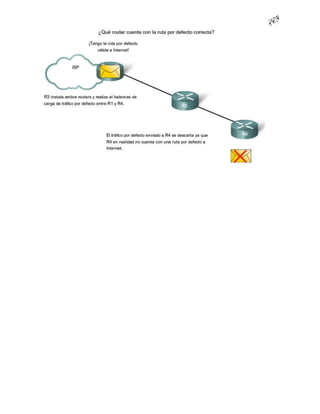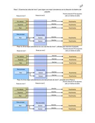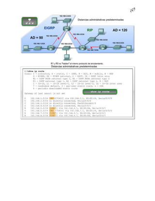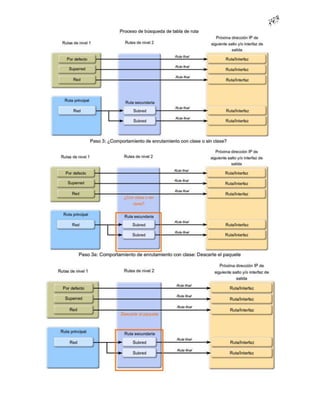 Este documento introduce el concepto de enrutamiento y envío de paquetes. Explica que los routers son computadoras que conectan redes y son responsables de entregar paquetes de forma eficiente entre ellas. Los routers usan tablas de enrutamiento y protocolos para determinar la mejor ruta para enviar cada paquete a su destino correcto a través de las redes.