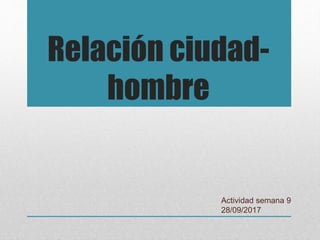 Este documento describe un proyecto realizado por un grupo de estudiantes sobre la relación entre la ciudad y el hombre. El grupo identificó este tema y creó una maqueta abstracta representando la ciudad con sus calles y edificios, y al hombre representado por su mente, la cual encerraba a la ciudad. El proyecto buscaba demostrar la relación y apoyo mutuo entre la ciudad y el hombre a través del espacio.