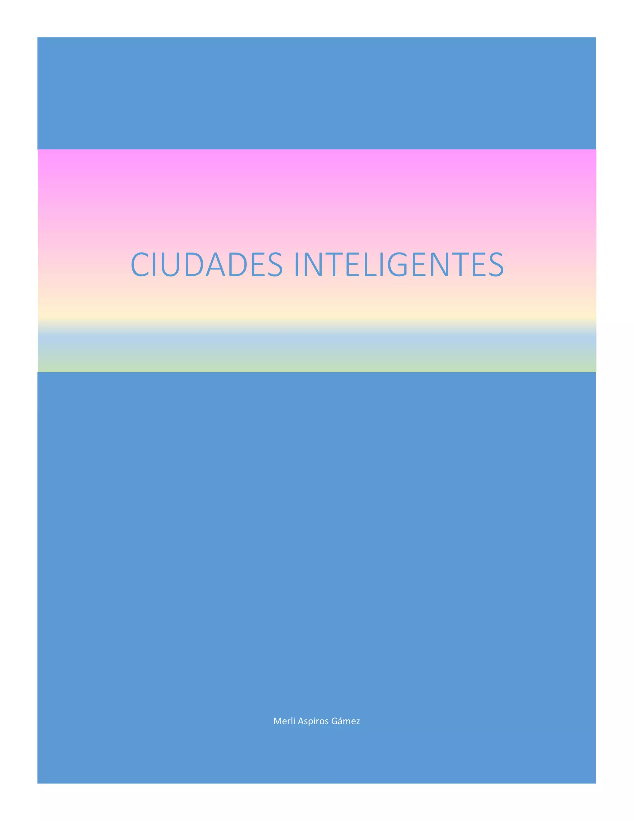 El documento describe las ciudades inteligentes y sus características. Define una ciudad inteligente como aquella que usa intensivamente las tecnologías de la información y la comunicación para mejorar los sistemas de la ciudad y la calidad de vida. Explica que las ciudades inteligentes requieren el uso de sensores, redes y procesamiento de datos para tomar decisiones que mejoren la ciudad. También destaca la importancia de que las ciudades inteligentes empoderen a los ciudadanos y promuevan su participación a través de la tecnología.