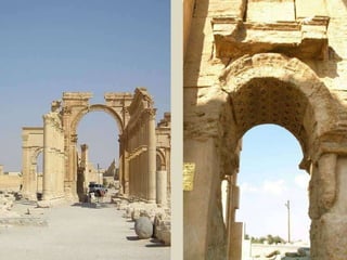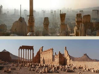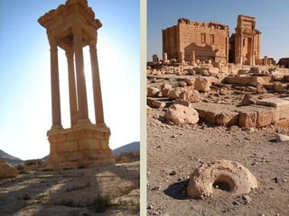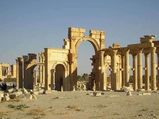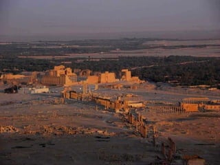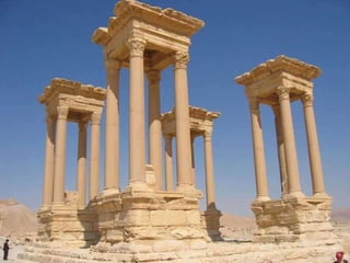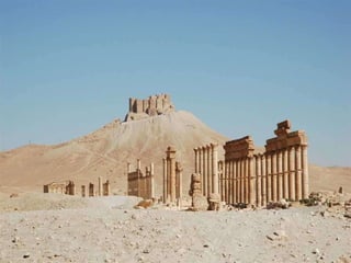 Palmira fue una importante ciudad-estado siria entre los siglos I a.C. y III d.C. que llegó a tener 200.000 habitantes. Fue destruida por los romanos en el 273 d.C. y posteriormente reconstruida, aunque nunca recuperó su espl