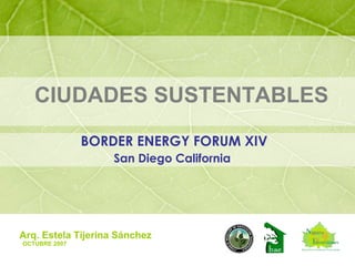 El documento describe los principios de las ciudades sustentables. Explica que los edificios tienen un gran impacto ambiental y son responsables de gran parte de las emisiones de gases de efecto invernadero. También describe los efectos del cambio climático como el aumento del nivel del mar y las temperaturas. Finalmente, resume los principios del nuevo urbanismo para crear ciudades compactas, conectadas y con diversidad que minimicen el impacto ecológico.