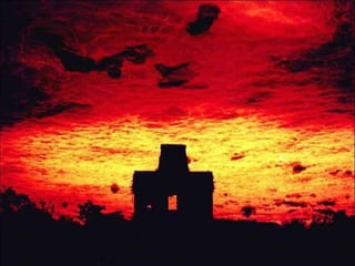El documento describe las impresionantes ciudades de la civilización maya y cómo su descubrimiento cambió nuestra perspectiva de la historia. Los mayas desarrollaron una sofisticada civilización con avances en urbanismo, arquitectura, matemáticas, astronomía y escritura. Se mencionan numerosos sitios arqueológicos mayas como Chichen Itza, Palenque y Uxmal, mostrando fotos de sus templos e infraestructura.