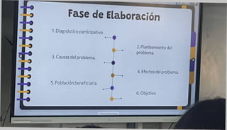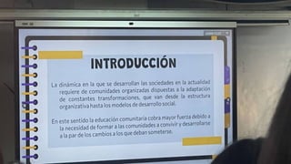 El documento habla sobre proyectos comunitarios. Explica que un proyecto comunitario es un conjunto de actividades concretas orientadas a lograr objetivos para dar respuesta a las necesidades y potencialidades de las comunidades. Describe las fases típicas de un proyecto como la identificación, formulación, ejecución, seguimiento y evaluación.