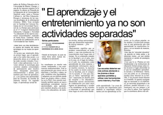 Nicholas Burbules es un experto en educación y nuevas tecnologías que cree que las TIC revolucionan la educación al hacerla más social y ubicua. Los estudiantes aprenden de forma multimedia en redes sociales y produciendo sus propios videos, lo que desafía a las escuelas a enseñar de nuevas formas como alentando el uso de herramientas como Internet y YouTube. Burbules también dice que esta generación sabe más sobre tecnología que sus profesores y que las escuelas deben desarrollar asociaciones con otros lugares de