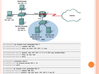 Las ACLs extendidas permiten filtrar paquetes basándose en información de capas 3 y 4 como direcciones IP, puertos TCP y UDP. Esto ofrece mayor flexibilidad que las ACLs estándar que solo filtran por dirección IP. Las ACLs se aplican a interfaces de red o líneas vty para permitir o denegar acceso basándose en las condiciones especificadas.
