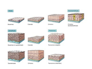 Este documento presenta información sobre histología animal II impartida en la Universidad de Concepción. Explica las técnicas histológicas de tinción con hematoxilina y eosina y los artefactos más comunes. Luego define la histología como la ciencia que estudia la estructura microscópica y función de los tejidos, describiendo los tejidos fundamentales como epitelios y sus características. Finalmente, resume las funciones principales de los epitelios de revestimiento.