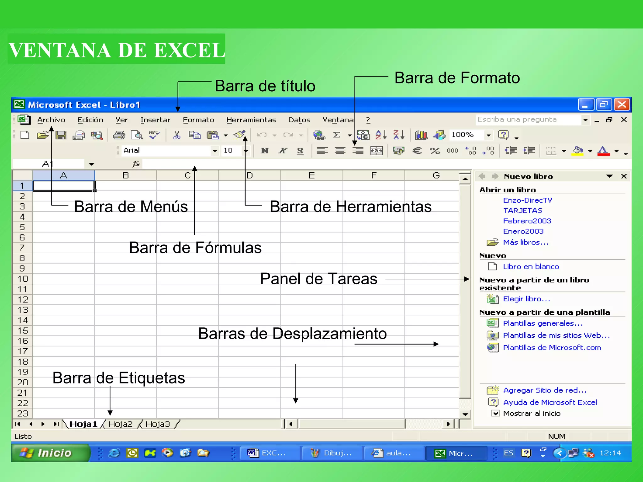 Este documento proporciona una introducción a Microsoft Excel, describiendo las principales características de la interfaz como la barra de título, menús, herramientas y pestañas. Explica cómo abrir, guardar y crear libros de Excel, así como realizar operaciones básicas como copiar, cortar y pegar. También cubre la selección de celdas, filas y columnas, y cómo cambiar anchos y altos. Brevemente menciona operaciones con hojas, formato de celdas, operadores y funciones como suma, resta,