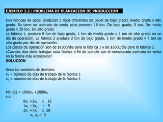El documento presenta una introducción a la investigación de operaciones. Brevemente describe que la IO utiliza métodos cuantitativos para modelar problemas complejos y apoyar la toma de decisiones. Explica que la IO se originó durante la Segunda Guerra Mundial para resolver problemas logísticos y luego se expandió a la industria. También introduce conceptos clave como los tipos de modelos (icónicos, analógicos, simbólicos) y las fases para resolver problemas mediante la IO.