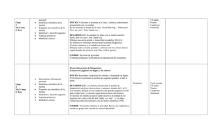 Este documento presenta la planificación de cuatro clases de inglés para estudiantes de primer grado. Las clases se centran en la unidad "Toys and color" e incluyen objetivos como identificar juguetes y colores en inglés, expresar posesivos, y saludarse. Las actividades propuestas incluyen cantos, dibujos, juegos con vocabulario y una prueba diagnóstica.