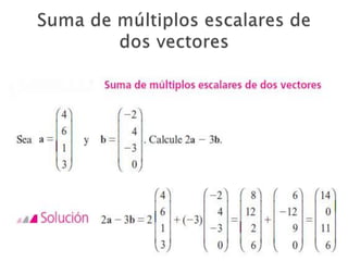 El documento habla sobre el curso de álgebra lineal y su profesor Adolfo Méndez Corrales. Explica que el álgebra lineal ayuda a resolver problemas cotidianos y laborales de forma más fácil mediante la representación algebraica. Además, introduce conceptos como vectores, matrices y sus aplicaciones en ingeniería, estadística e informática. Finalmente, asigna tareas que incluyen ejercicios sobre vectores y matrices.