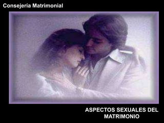 Este documento describe tres aspectos de la sexualidad en el matrimonio: el acto sexual, la intimidad física y la intimidad emocional. Explica cómo estos tres aspectos se relacionan con diferentes esquemas matrimoniales y pueden dar lugar a dificultades sexuales. También profundiza en cada uno de estos aspectos y discute cómo la terapia de pareja puede abordar problemas sexuales en el 75% de los pacientes con discordia conyugal.