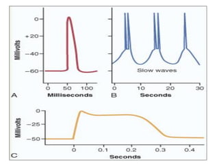 El documento describe la estructura y características del músculo liso. Se encuentra en las paredes de órganos huecos y se contrae de forma involuntaria bajo la influencia del sistema nervioso autónomo. Está compuesto de células musculares lisas fusiformes que contienen filamentos de actina y miosina no organizados en sarcomeros. La contracción genera presión en el interior de los órganos de forma lenta y sostenida.