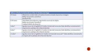 Este documento presenta una lista de temas relacionados con la oftalmología, incluyendo la estructura y función del ojo, defectos de refracción, agudeza visual, patologías de diferentes partes del ojo como la córnea, cristalino y retina, y condiciones como conjuntivitis, glaucoma y retinopatía. Explica conceptos como la evaluación de la agudeza visual, defectos de refracción comunes, y pruebas para evaluar la visión de colores. También discute temas como el uso de anteojos, há