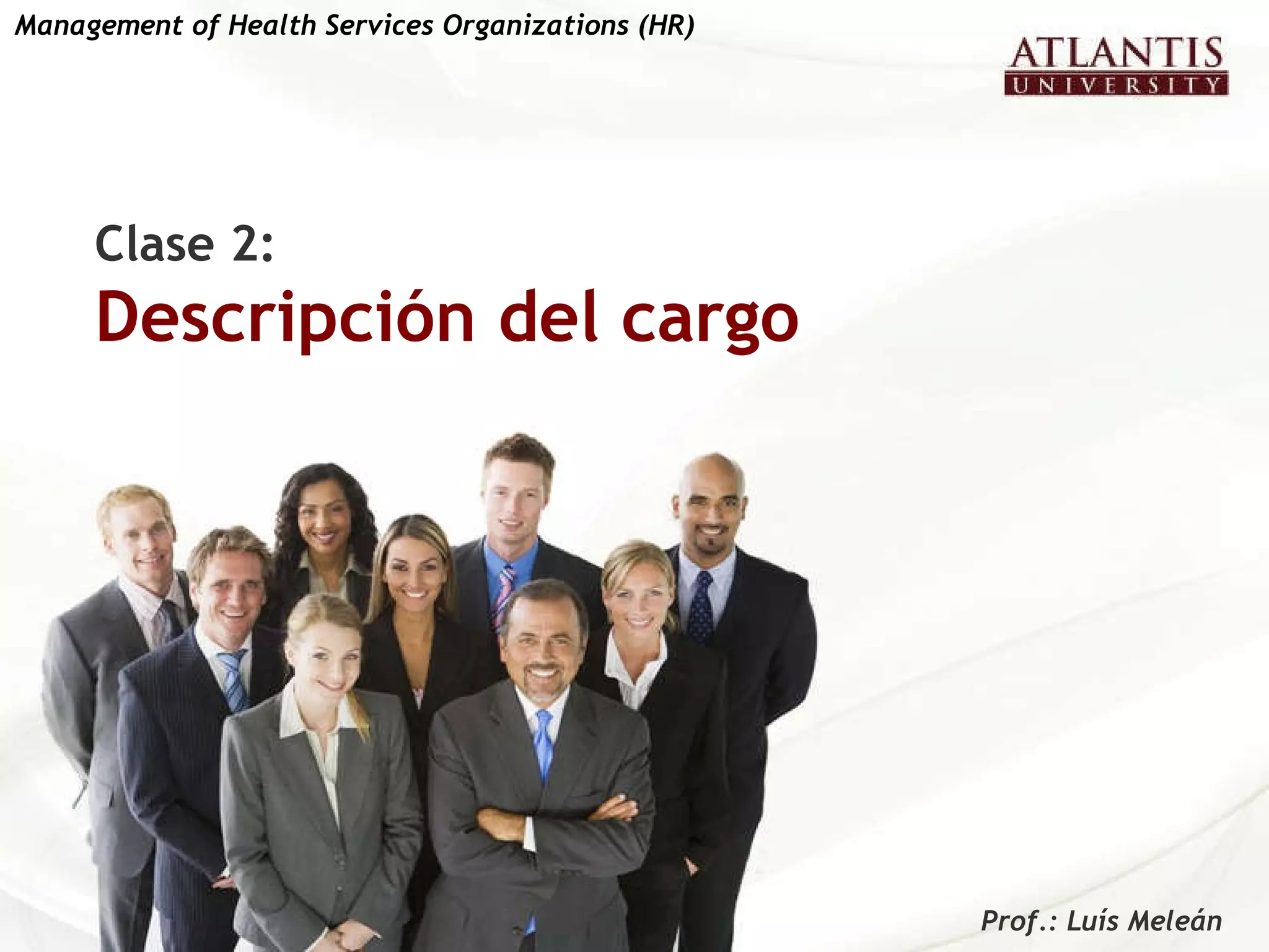 Este documento describe el cargo de Gerente de Recursos Humanos. El Gerente de RH es responsable de desarrollar e implementar políticas de recursos humanos, asegurar la contratación, desarrollo y retención del personal, dirigir programas de capacitación y evaluación de desempeño, y recomendar políticas de compensación. El Gerente de RH también supervisa las relaciones laborales y evalúa la cultura organizacional para garantizar la alineación continua entre la organización y su estrategia.