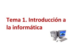 El documento introduce el tema de la informática. Define la informática como la ciencia que estudia el procesamiento automático de la información por medio de ordenadores. Explica que la informática surgió en los años 1940 con el desarrollo de los primeros computadores. También discute conceptos clave como información, procesamiento de datos, aplicaciones informáticas y usabilidad.