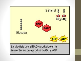 La respiración anaeróbica se produce en ausencia de oxígeno y su mecanismo más común es la fermentación. La fermentación es un proceso catabólico totalmente anaeróbico donde los monosacáridos se transforman en compuestos como el alcohol etílico, ácido láctico o dióxido de carbono para generar energía. Pasteur descubrió que la fermentación es causada por la actividad de microorganismos como las levaduras.