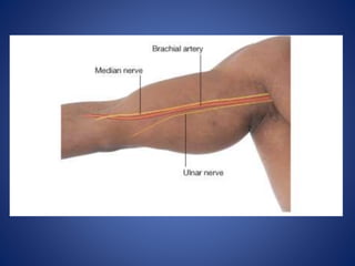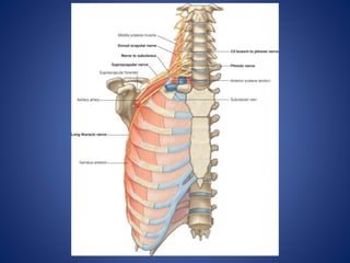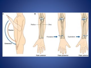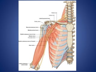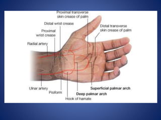 Este documento describe la irrigación sanguínea y la inervación de la extremidad superior humana. Explica las principales arterias como la radial y la cubital, y sus ramificaciones que proveen sangre a la mano. También describe la formación del arco palmar superficial y profundo, así como las estructuras que inervan la extremidad superior y los movimientos que puede realizar.