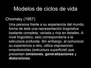 El documento describe diferentes modelos de ciclo de vida para el desarrollo de software, incluyendo modelos secuenciales como el modelo cascada y modelos iterativos como el modelo iterativo e incremental. Explica que el modelo iterativo e incremental es más adecuado para la realidad del desarrollo de software, donde se requieren cambios constantes y se aprende a lo largo del proceso a través de iteraciones sucesivas.