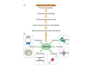 Este documento trata sobre biomoléculas como aminoácidos y proteínas. Explica que los aminoácidos son los bloques de construcción de las proteínas y contienen carbono, hidrógeno, oxígeno y nitrógeno. Las proteínas se forman por la unión de múltiples aminoácidos mediante enlaces peptídicos. Las proteínas adquieren estructuras complejas como la estructura primaria, secundaria, terciaria y cuaternaria. Algunas proteínas importantes son las enzimas, prote
