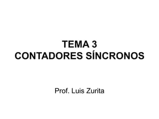 Este documento describe el funcionamiento de contadores síncronos de 2, 3 y 4 bits. Explica que en los contadores síncronos los flip-flops reciben la señal de reloj al mismo tiempo gracias al retardo entre ellos. Propone ejercicios prácticos usando contadores como 74160, 74163 para contar personas, botellas, vehículos y más.