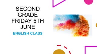 La clase de inglés de segundo grado incluyó tres actividades sobre pasatiempos y el clima. Los estudiantes completaron ejercicios en su libro de estudiante que involucraron emparejar imágenes con pasatiempos y oraciones, y luego describir sus propios pasatiempos. También unieron oraciones sobre el clima con imágenes correspondientes.