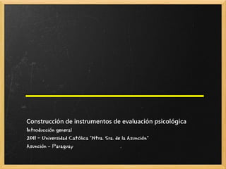 Este documento habla sobre la construcción de instrumentos de evaluación psicológica. Explica que primero se debe definir lo que se desea medir y la población objetivo, luego se identifican comportamientos observables que indiquen el constructo. También describe métodos como el análisis de contenido, revisión de investigaciones, incidentes críticos y juicio de expertos para identificar los comportamientos relevantes y plasmarlos en los ítems de una prueba. Finalmente, menciona que la opinión de expertos en el tema es útil para