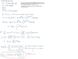 El documento habla sobre la controlabilidad y observabilidad de sistemas de estado. Explica que un sistema es completamente controlable si es posible transferir cualquier estado inicial a cualquier estado final en un tiempo finito mediante una señal de control no acotada. También dice que un sistema es completamente observable si es posible reconstruir todas las variables de estado no medibles a partir de las variables de estado medibles en un tiempo mínimo.