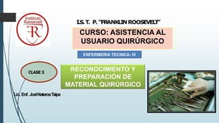 Este documento describe los procedimientos para preparar material quirúrgico como gasas, apósitos e instrumental. Explica cómo cortar, doblar y empaquetar las gasas, así como preparar apósitos. También describe la clasificación e instrumental quirúrgico según su función, composición y forma. El objetivo es preparar este material de manera estéril para su uso en el quirófano.