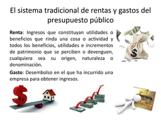 El documento describe diferentes sistemas presupuestarios utilizados por los gobiernos, incluyendo el sistema tradicional de ingresos y gastos, el sistema de presupuesto por programa, y los componentes de la estructura programática. También analiza los programas de funcionamiento e inversión, y discute las fortalezas y debilidades de los diferentes sistemas presupuestarios.