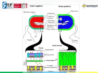 Las bacterias son microorganismos procariotas que tienen un gran impacto en el mundo. Presentan diversas características morfológicas y estructurales como su pequeño tamaño, forma variable, presencia o ausencia de pared celular, flagelos y otros apéndices. Su clasificación se basa en criterios fenotípicos y filogenéticos. La taxonomía bacteriana utiliza características morfológicas, fisiológicas, genéticas y moleculares para agruparlas en diferentes rangos taxonómicos como especie,