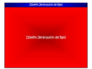 El documento describe el diseño jerárquico de redes, el cual divide la red en capas independientes donde cada capa desempeña una función específica. Estas capas incluyen la capa de acceso, la capa de distribución y la capa de núcleo. El diseño jerárquico proporciona ventajas como flexibilidad, resistencia y facilidad de administración al dividir el problema complejo del diseño de red en áreas más pequeñas. El documento también incluye ejemplos de cómo aplicar este diseño jerárquico en redes emp