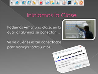 La clase se llevará a cabo en línea donde los estudiantes y el maestro pueden conectarse, compartir archivos, trabajar juntos, y comunicarse a través de chat. El maestro puede monitorear lo que los estudiantes están haciendo y silenciar a aquellos que no están trabajando, mientras que los estudiantes pueden levantar la mano si necesitan ayuda. Se anima al maestro a ser creativo y utilizar múltiples herramientas tecnológicas para complementar las clases en línea.