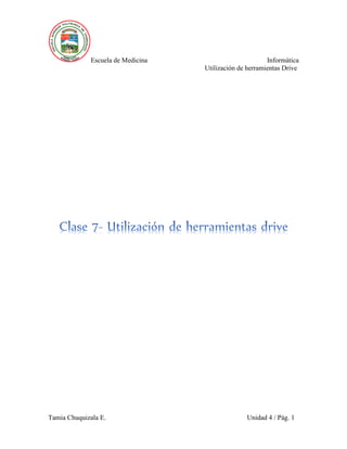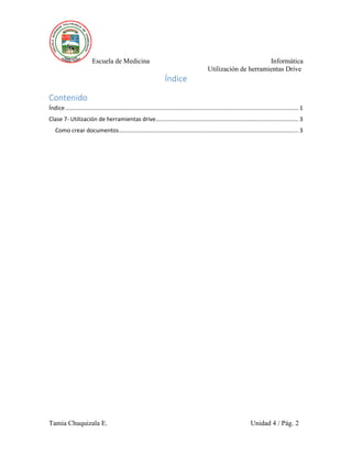 El documento habla sobre las herramientas de Google Drive y cómo se pueden usar para la colaboración. Explica que Drive permite trabajar en documentos en grupo y almacenar información en la nube de forma que esté disponible desde cualquier equipo con la cuenta de usuario. Describe cómo crear documentos, hojas de cálculo y formularios en Drive y compartirlos con otros para editarlos o comentarlos de forma colaborativa en línea.