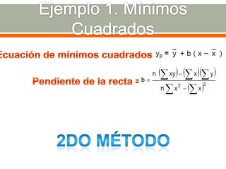 Este documento presenta información sobre estadística inferencial y regresión lineal. Explica cómo usar datos de muestras para inferir sobre poblaciones más grandes, y cómo modelar la relación entre variables dependientes e independientes usando una recta de regresión. También incluye ejemplos y tablas de datos para ilustrar estos conceptos estadísticos.