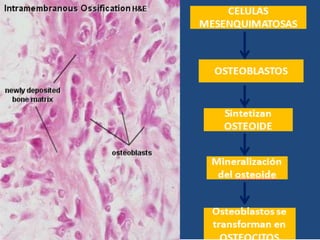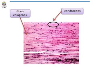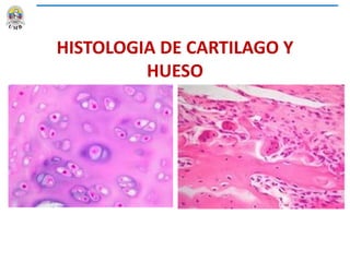 El documento describe la histología del cartílago y el hueso. Explica que el cartílago es un tejido conjuntivo especializado que soporta los tejidos blandos y amortigua las tensiones mecánicas. Describe los diferentes tipos de cartílago, incluidos el cartílago hialino, elástico y fibroso, y sus componentes celulares y matriciales. Luego explica que el hueso es un tejido conjuntivo mineralizado que cumple funciones de soporte, protección y almacenamiento. Det