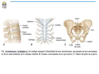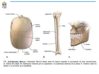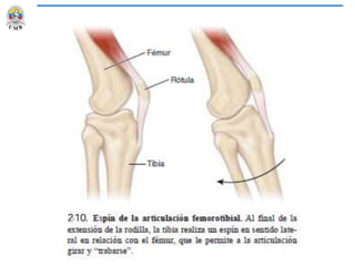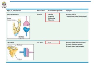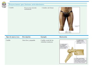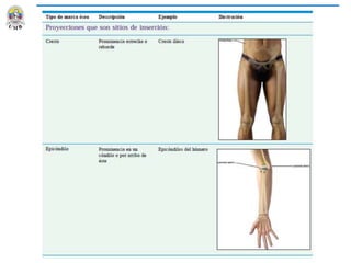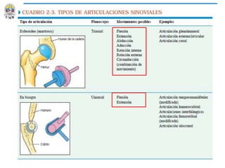 Este documento resume las estructuras principales del sistema locomotor, incluyendo los huesos, articulaciones y músculos. Explica que los huesos proporcionan sostén y protección al cuerpo, y que las articulaciones permiten el movimiento entre los huesos. Finalmente, describe que los músculos esqueléticos generan la fuerza necesaria para el movimiento a través de la contracción muscular impulsada por fuentes de energía en el cuerpo.