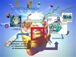 Este documento resume las clases de una asignatura sobre estrategias de búsqueda, selección y organización de información. Se detalla que los estudiantes aprendieron a indagar y familiarizarse con temas, precisar el nivel de profundidad de conocimiento requerido, y desarrollaron habilidades para crear mapas conceptuales, hipertextos, wikilibros, foros de discusión y videos. El documento concluye resaltando que fue una experiencia maravillosa.