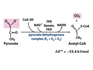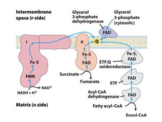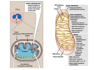 El documento habla sobre el ciclo de Krebs y la cadena de transporte de electrones en la mitocondria. Explica que el ciclo de Krebs (también conocido como ciclo del ácido cítrico o ciclo de los ácidos tricarboxílicos) utiliza productos de la degradación de carbohidratos, grasas y proteínas para generar energía en forma de ATP. También describe los pasos y moléculas involucradas en el ciclo de Krebs y la cadena de transporte de electrones, incluyendo los complejos proteicos