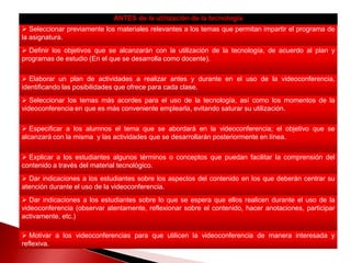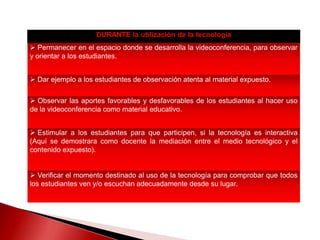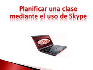 El documento describe cómo los profesores pueden planificar clases usando Skype para mejorar la enseñanza a distancia. Se recomienda que los profesores prueben la conexión y audio con anticipación, preparen materiales y actividades interactivas, y revisen las herramientas de Skype para compartir pantalla y archivos.