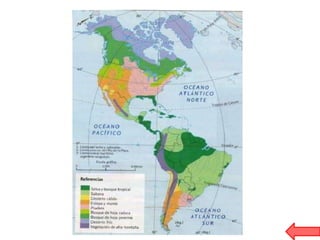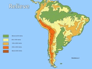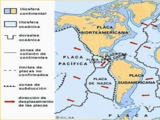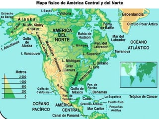 El documento habla sobre diversos temas relacionados con la geografía de América. Menciona las placas tectónicas y cómo causan terremotos y volcanes. También describe varias regiones naturales del continente como los Andes, las llanuras y las cuencas hidrográficas incluyendo los ríos Amazonas y Río de la Plata. Finalmente, presenta información sobre el acuífero Guarani y su importancia para los países de la región.