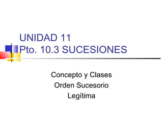 Este documento resume los principales conceptos relacionados con las sucesiones. Define la sucesión como la transmisión de derechos de una persona fallecida a sus herederos. Explica que existen sucesiones legítimas y testamentarias, y describe el orden sucesorio y las porciones que les corresponden a los diferentes herederos forzosos como descendientes, ascendientes y cónyuge. También explica el concepto de legítima y cómo se calcula y protege esta porción reservada a los herederos.