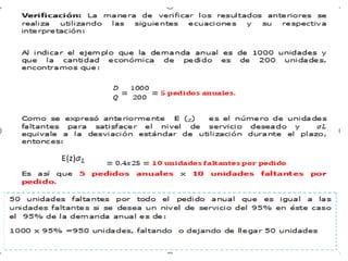 Este documento describe los conceptos básicos de los inventarios. Define inventarios como las existencias de cualquier artículo o recurso utilizado en una organización. Explica que un sistema de inventario incluye políticas y controles para monitorear los niveles de inventario y determinar cuándo y cuánto se debe reponer. Además, identifica los objetivos y costos clave asociados con los inventarios.