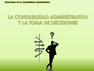 1) La contabilidad administrativa y financiera proveen información para la toma de decisiones de sus usuarios internos y externos respectivamente. Mientras que la contabilidad financiera se enfoca en el pasado y está regulada, la contabilidad administrativa se enfoca en el futuro y usa múltiples disciplinas para resolver problemas. 2) La contabilidad administrativa ayuda a la planeación, control y toma de decisiones al proveer información cualitativa y cuantitativa sobre áreas específicas de la empresa. 3) Tanto la contabilidad administrativa como financiera exigen responsabilidad
