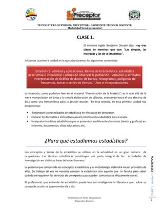 La estadística se presenta como una herramienta útil para la gestión escolar. Se divide en estadística descriptiva e inferencial. La descriptiva se ocupa de recopilar, organizar y presentar datos, mientras que la inferencial permite extraer conclusiones sobre una población a partir de una muestra. El documento explica los conceptos básicos de estadística y sus usos en el ámbito educativo.